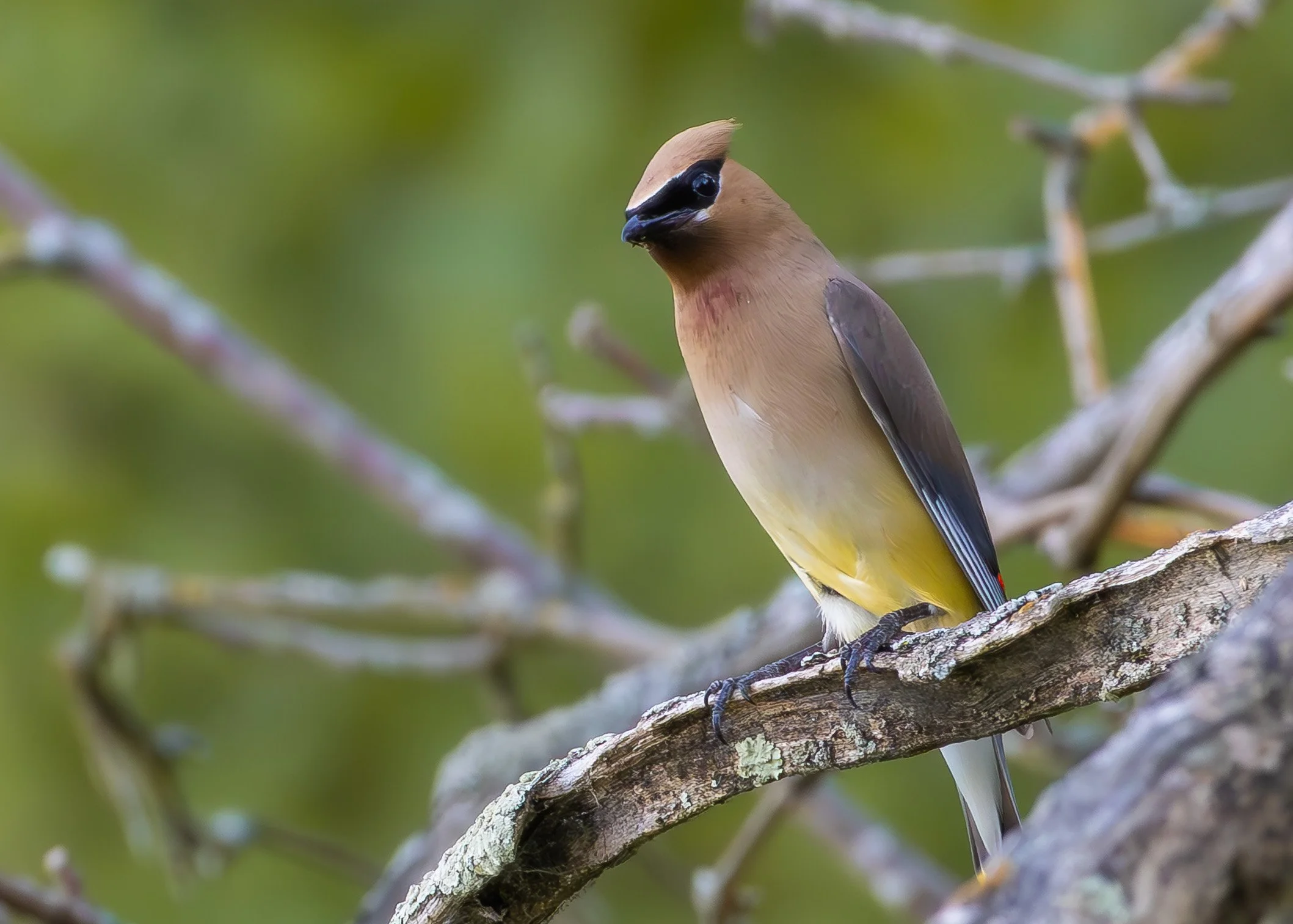 Two Cedar Waxwings looking at something that has caught their attention at Bicentennial Woods ACRES Land Trust, Fort Wayne, IN