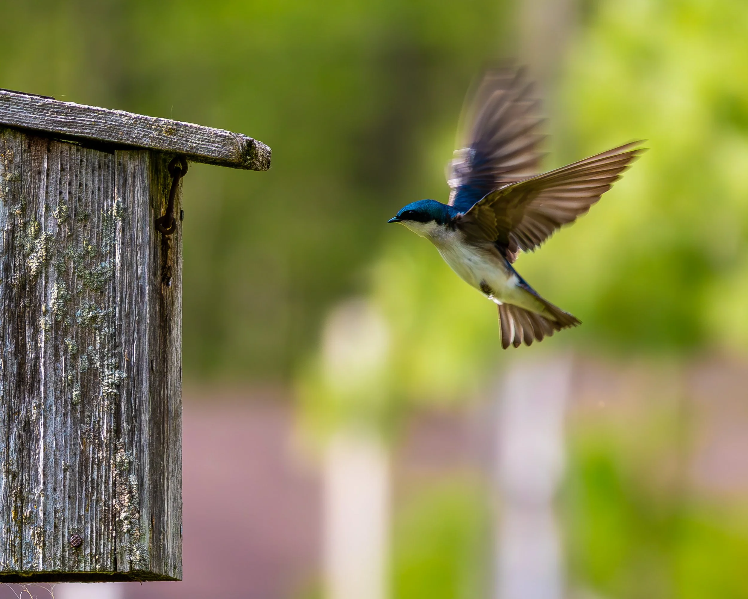 Barn Swallow landing in a nesting box at Salomon Farms, Fort Wayne, IN