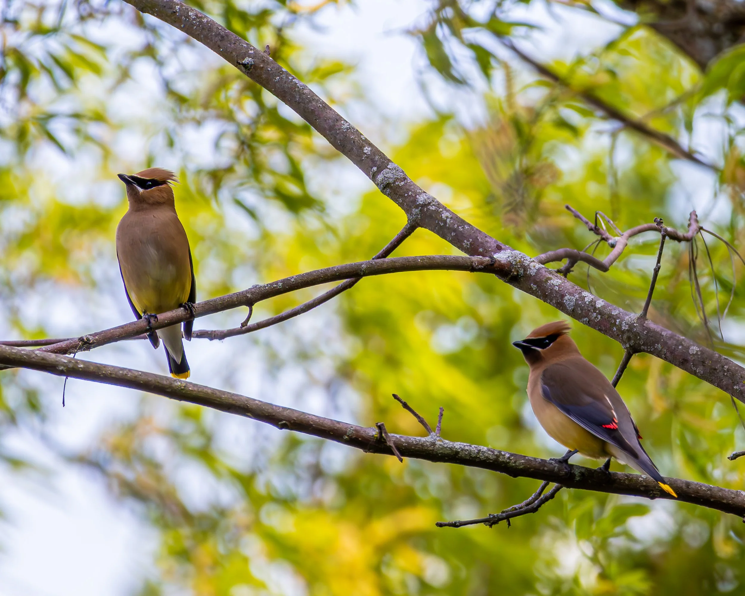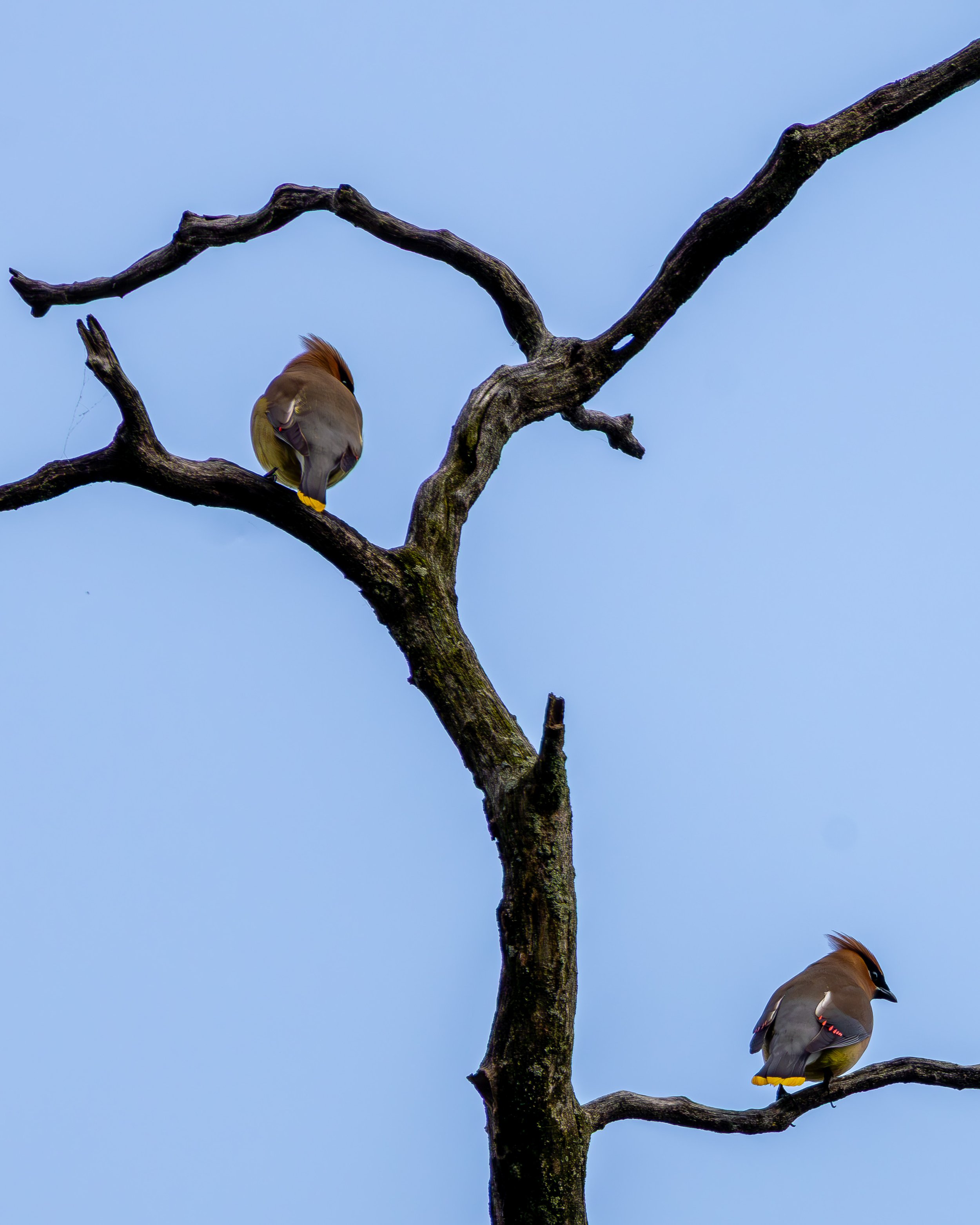 Two Cedar Waxwings on the lookout for a snack at Salomon Farms Park